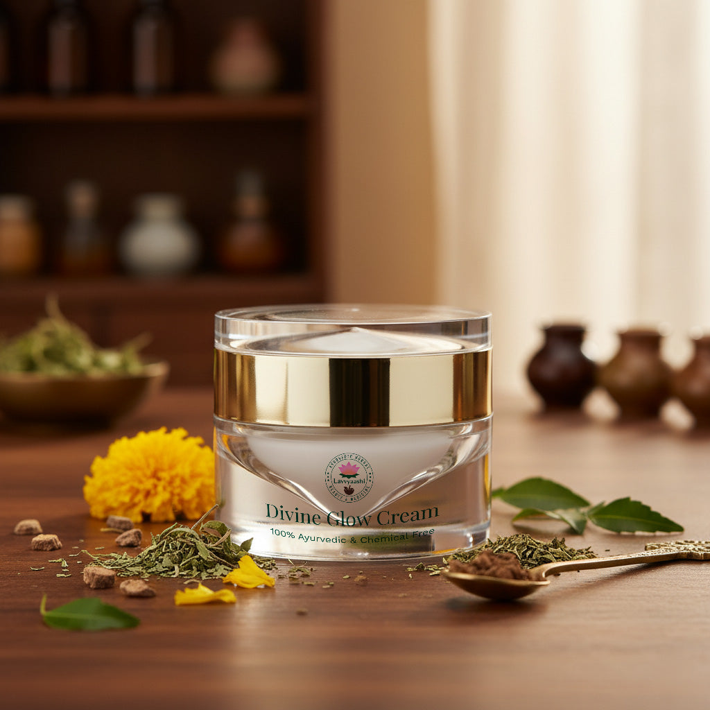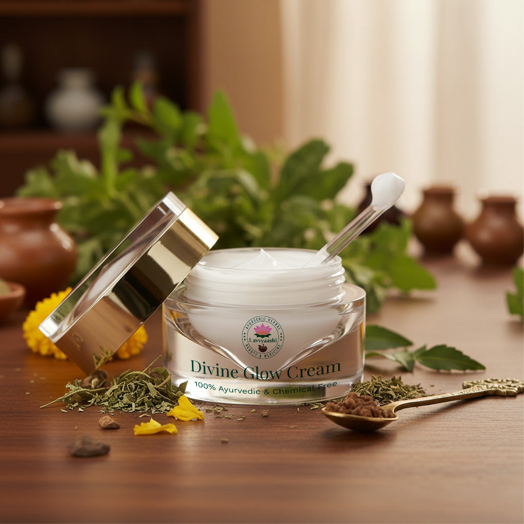 Experience the magic of ancient Ayurveda with a modern twist. Lavvyaashi Divine Glow Cream is your nightly dose of radiance — a luxurious blend of time-tested herbs and pure oils that work while you rest, so you wake up to skin that’s visibly brighter, softer, and naturally glowing.